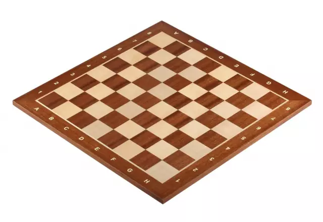 Dit hoogwaardige houten schaakbord van 44 x 44 cm is vervaardigd uit elegant esdoorn (sycamore) en klassiek mahoniehout. Met een veldgrootte van 45 mm is het bord ideaal geschikt voor zowel kleinere als middelgrote schaakstukken, met een koningshoogte van 80 tot 90 mm.