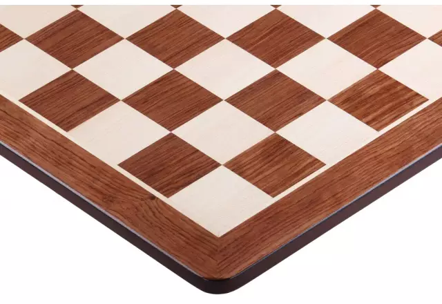 Dit eenvoudige, maar hoogwaardige toernooischaakbord van 40 x 40 cm is afgewerkt met een combinatie van padouk en esdoornfineer. Met een veldmaat van 40 x 40 mm is het bord ideaal voor kleinere schaakstukken, zoals onze 3 inch of Staunton No. 4 modellen.
