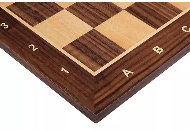 Dit fraaie toernooischaakbord van 44 x 44 cm is vakkundig afgewerkt met een combinatie van walnoot en esdoornfineer. Met een veldmaat van 45 x 45 mm is het bord ideaal geschikt voor kleine tot middelgrote schaakstukken, zoals onze stukken van 3,00″ tot 3,50″ of Staunton No. 4 en No. 5 modellen.