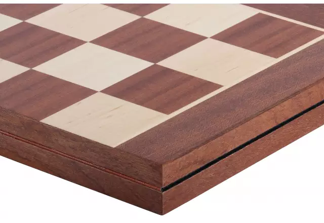 Bent u op zoek naar een functioneel én stijlvol vouwbaar houten schaakbord dat voldoet aan toernooistandaarden? Dit fraaie bord van 54 x 54 cm is uitgevoerd met een hoogwaardige mahonie- en esdoorninleg, en biedt een strak en professioneel uiterlijk, geheel zonder alfanumerieke markeringen – ideaal voor spelers die de voorkeur geven aan een klassieke, rustige uitstraling tijdens het spel.