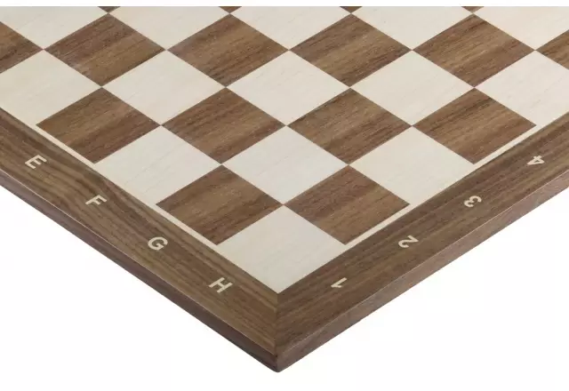Dit prachtige toernooischaakbord van 54 x 54 cm is vakkundig ingelegd met esdoorn (maple) en walnoot, wat zorgt voor een elegante en duurzame afwerking. Met een veldmaat van 58 mm is dit bord perfect afgestemd op grotere schaakstukken, waaronder stukken met een koningshoogte van 98 mm.