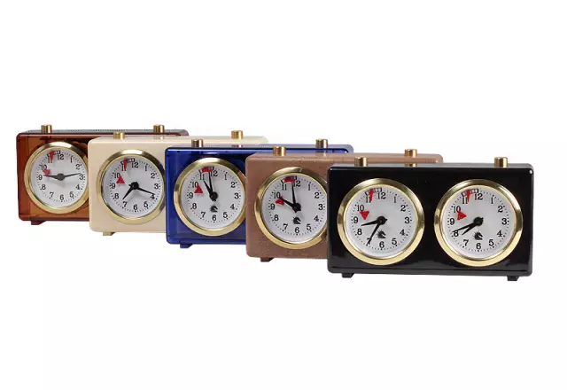 Deze betrouwbare analoge schaakklok in een elegante crème kleur is ideaal voor scholen, schaakclubs en toernooien. Het robuuste opwindmechanisme maakt batterijen overbodig, terwijl de grote, helder afleesbare wijzerplaten en het extra grote vlagmechanisme zorgen voor nauwkeurige en duidelijke tijdregistratie. Alle mechanische onderdelen zijn vakkundig gefreesd uit messing of roestvrij staal, wat zorgt voor een lange levensduur en consistente prestaties. De compacte kunststof behuizing maakt deze klok licht en praktisch in gebruik.