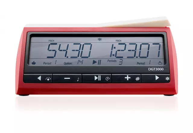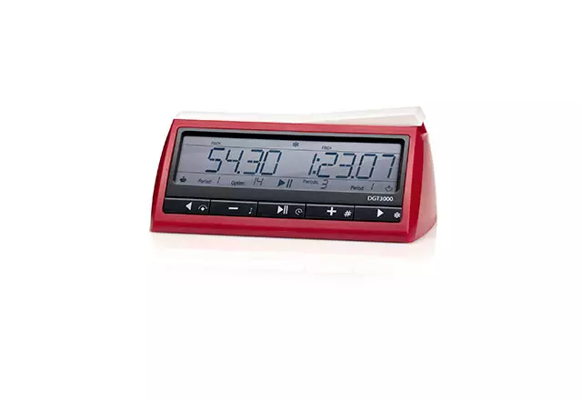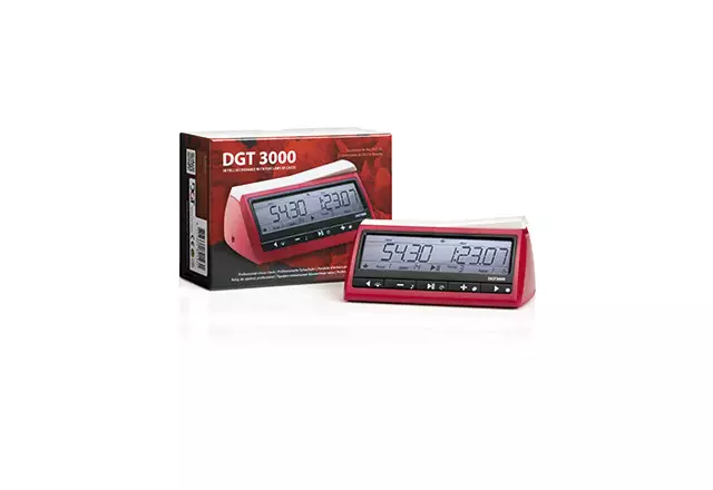 De DGT 3000 is de meest geavanceerde digitale schaakklok van DGT en voldoet volledig aan de officiële FIDE-voorschriften. Deze klok is geschikt voor zowel toernooien als serieuze thuisgebruikers en is compatibel met alle DGT e-boards. Dankzij het vergrote display zie je vanaf de eerste seconde alle essentiële informatie. De DGT 3000 beschikt over maar liefst 25 vooraf ingestelde speelmodi én 5 persoonlijke instellingen. Een topklasse schaakklok met een gebruiksvriendelijk ontwerp, 5 jaar garantie en geschikt voor elke ambitieuze schaker.