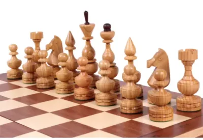 - Materiaal schaakbord/koffer: Beuken-, berken-, mahonie- en esdoornhout