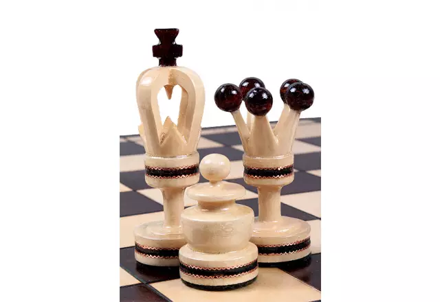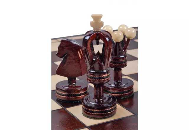 - Materiaal schaakstukken: Esdoornhout, ingelegd met messing
