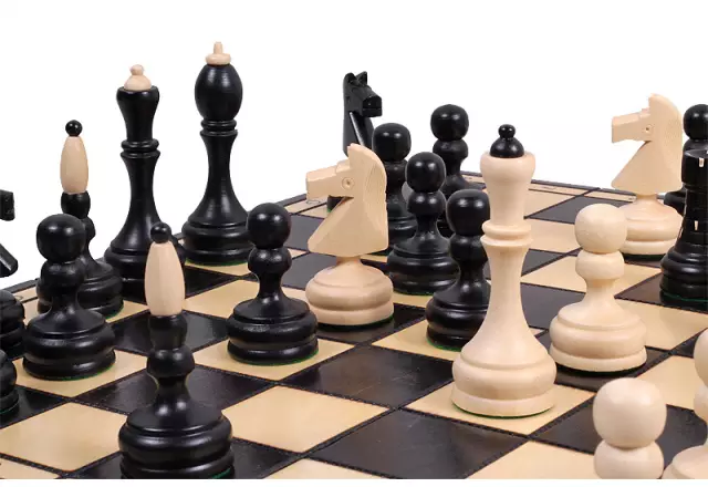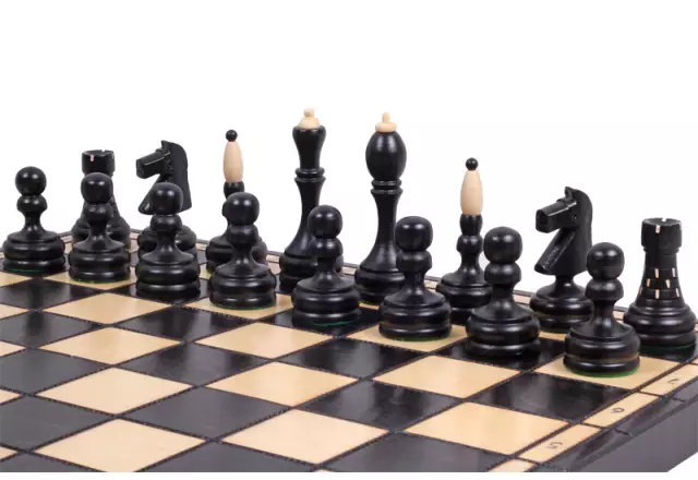 - Materiaal schaakstukken: Haagbeukhout, zwart geverfd