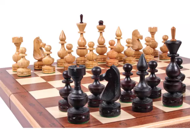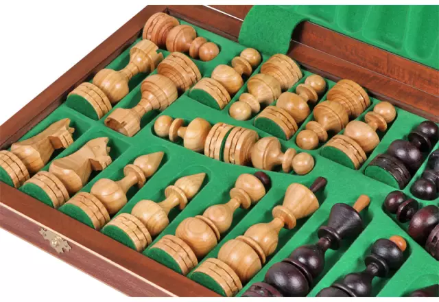 - Materiaal schaakbord/koffer: Beuken- en berkenhout, mahonie, esdoorn