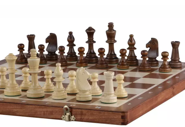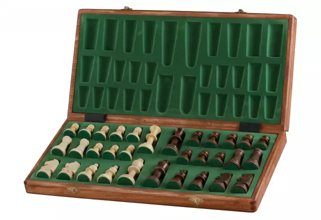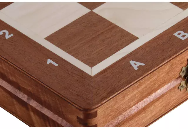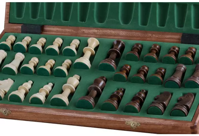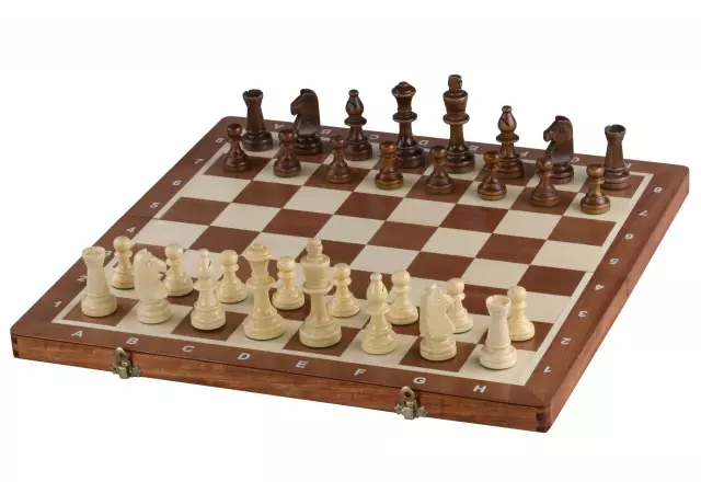 De Tournament Chess Set is de enige die als een professionele schaakset wordt beschouwd. Dit is onze middelgrote tournament set. Het bevat gewogen Staunton schaakstukken No. 5, gemaakt van schima hout, dat onder andere wordt gebruikt voor de productie van houten speelgoed, kinderbijtringen en andere houten artikelen. Het prachtige opvouwbare schaakbord is ingelegd met mahogany en sycamore, met een bijpassend opbergvak voor de stukken aan de binnenkant.