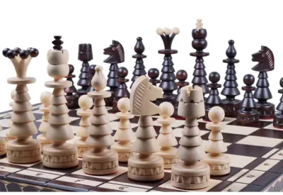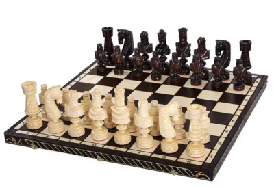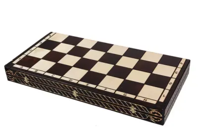 Deze toernooischaakset in grootte 5 staat bekend als het officiële toernooistandaard en biedt een combinatie van elegantie, functionaliteit en vakmanschap. Het halfvouwbare schaakbord, gemaakt van zorgvuldig ingelegd mahonie- en esdoornhout, heeft een indrukwekkend formaat van 48 x 48 cm en is ideaal voor zowel competities als thuisgebruik.