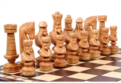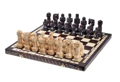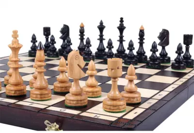 - Materiaal schaakstukken: Naaldhout (needlewood)