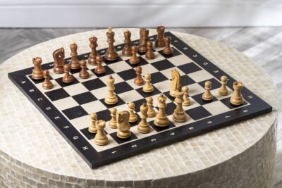 This is amazingly well-balanced model of chess pieces. The silhouette of knight should be particularly underlined due to its interesting design. Some people call it ,,Laughing Knight’’ as its muzzle is wide open as if it tried to laugh into its ennemies face. All pieces are characteristic because of its slim and detailed design.